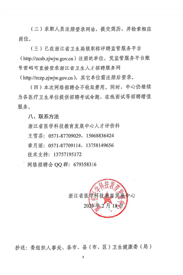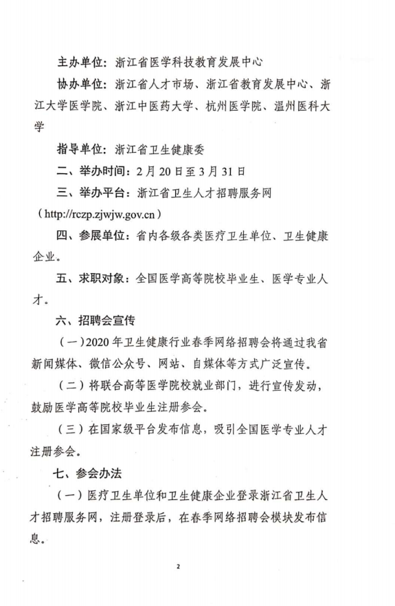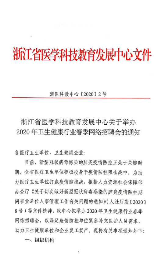 浙江省医学科技教育发展中心关于举办2020年卫生健康行业春季网络招聘会的通知