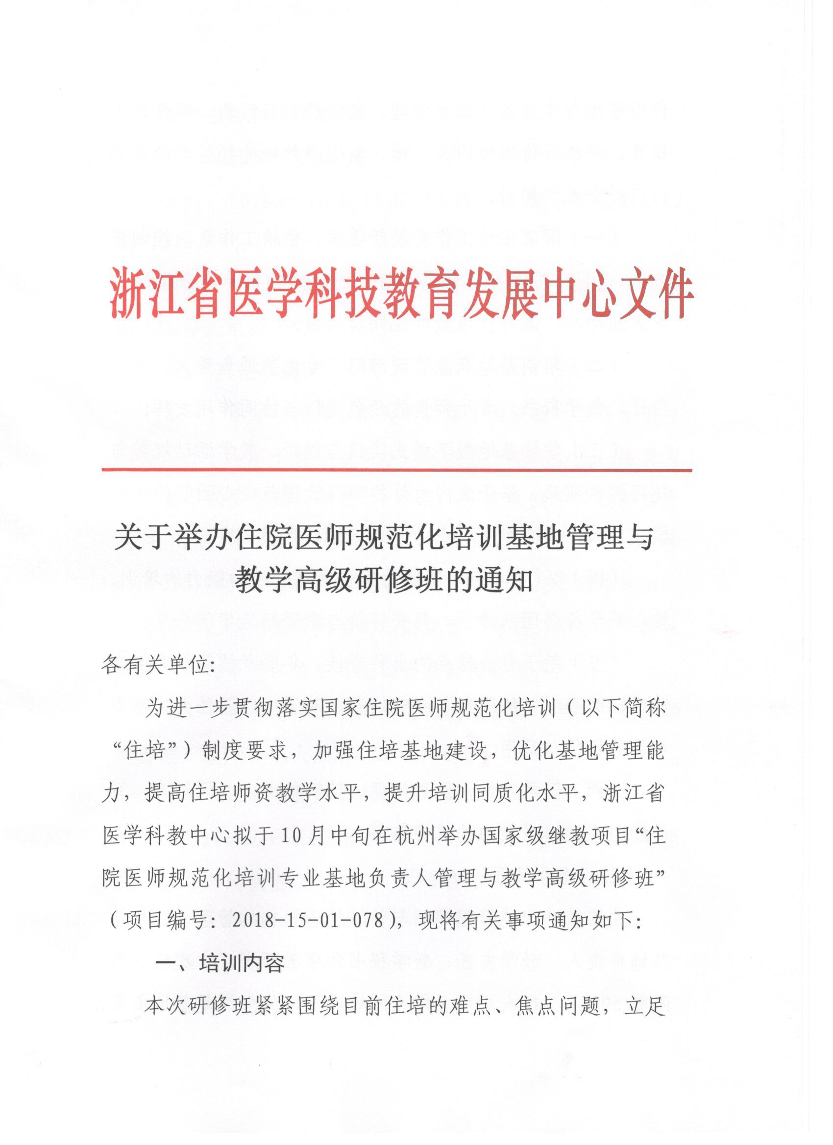 关于举办住院医师规范化培训基地管理与教学高级研修班的通知