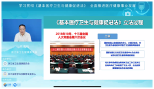 本次培训邀请《基本医疗卫生与健康促进法》起草专班成员中国医学科学院/北京协和医学院医疗卫生法制研究室主曹艳林主任,原清华大学法学院院长、全国资深法学专家王晨光教授,浙江省卫生健康委员会一级巡视员马伟杭主任等核心专家结合卫生健康工作实际对新法的新内容、新举措、新规定、新要求进行深入解读。