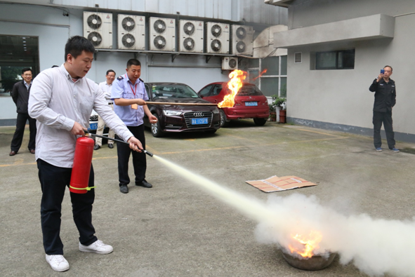 培训结束后进行了消防演练。随着警报声的响起,全体人员在疏散员的引导下进行紧急疏散,经过1分10秒的时间,每位成员安全撤离到指定位置。同时张教官展示并讲解了灭火器的使用方法,并指导大家现场操作,亲自体验。顾华主任对此次消防安全培训及演练做最后的总结点评。