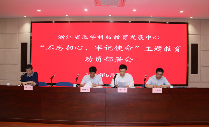 6月19日上午,省医学科技教育发展中心召开“不忘初心、牢记使命”主题教育动员部署会,省卫生健康委第三巡回指导组莅临现场指导。中心党支部书记、主任顾华同志作“不忘初心、牢记使命,建好五个平台助力卫生事业高质量发展”动员讲话,中心全体党员干部和职工参加会议。