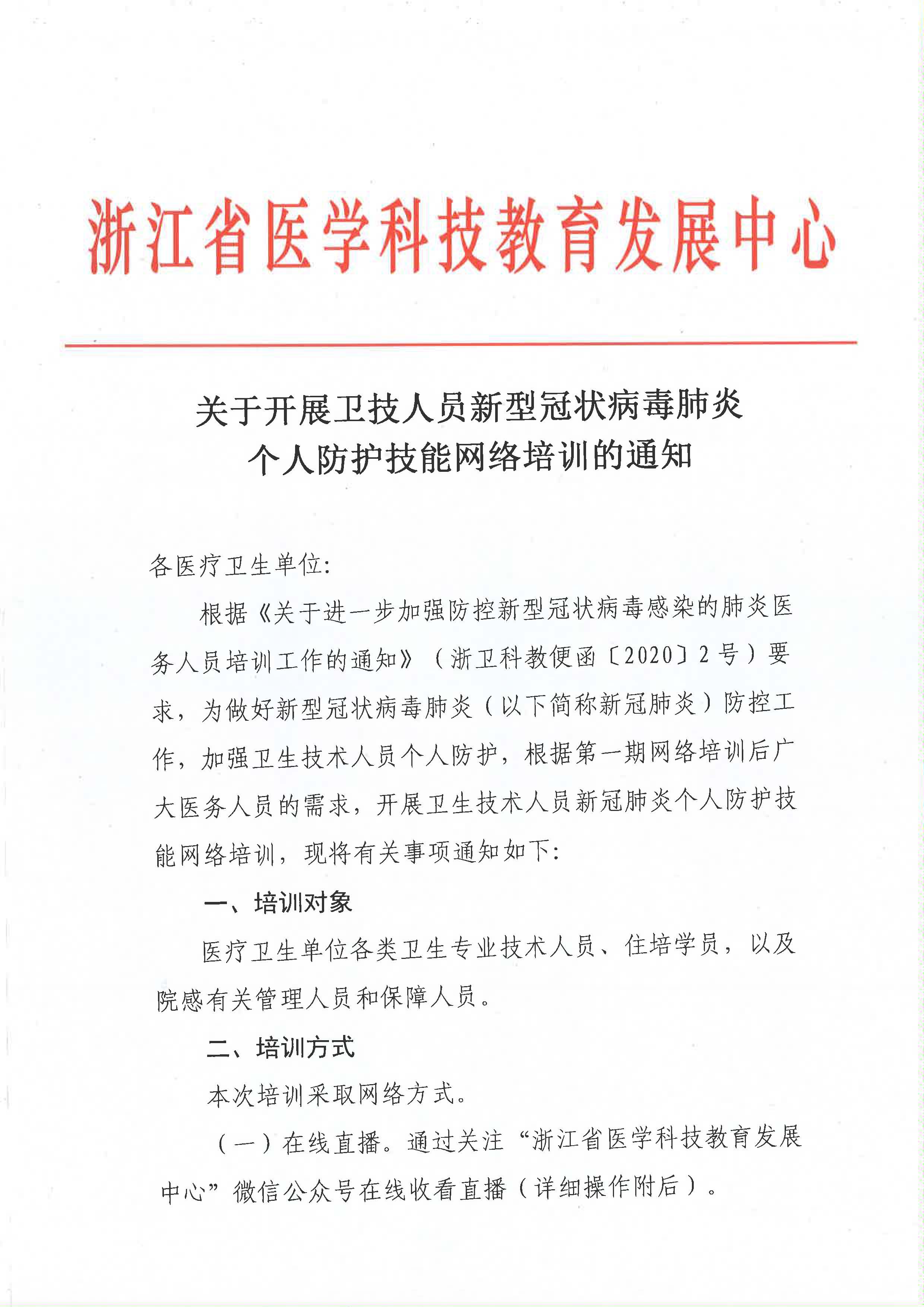关于开展卫技人员新型冠状病毒肺炎个人防护技能网络培训的通知