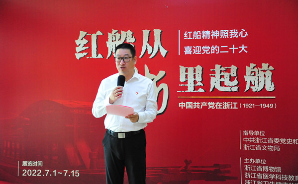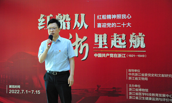 7月1日,在中国共产党迎来第101个生日之际,由浙江省博物馆、浙江省医学科技教育发展中心(以下简称“中心”)和浙江省卫生健康监测与评价中心联合主办的《红船从“浙”里起航——中国共产党在浙江(1921—1949)》巡展正式开幕。此次展览由中共浙江省委党史和文献研究室、浙江省文物局指导。